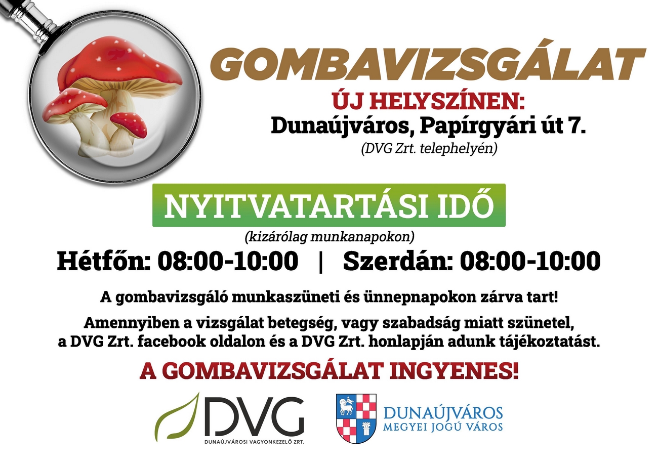 Címkék: Dunaújváros, DVG, gombavizsgálat, új helyen