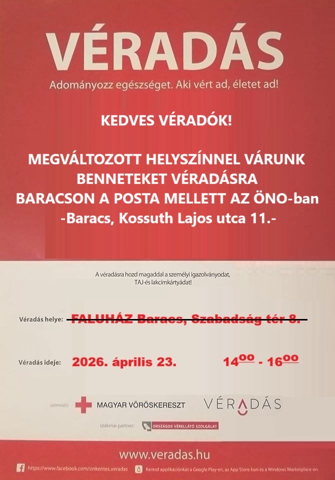 Véradás helyszínváltozással! Véradás helyszínváltozással!